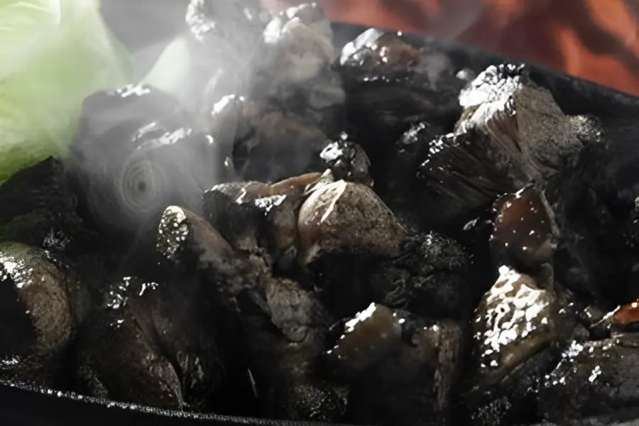 特に地頭鶏の篭焼きはぜひお召し上がりいただきたい逸品!かごに入れたじとっこを、大きな七輪で豪快に焼き上げます。炭焼きした香ばしい香りとジューシーさがたまらない!